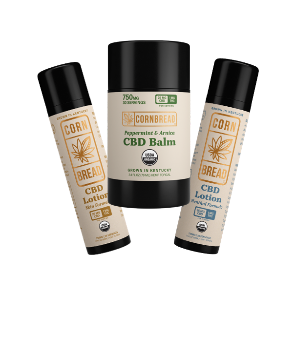 America’s first ever USDA certified organic CBD topical line, Cornbread Hemp’s CBD topicals are made from USDA certified organic Kentucky hemp that contains a full spectrum of cannabinoids. Available in lotion and balm varieties, our distilled CBD extract is blended with organic arnica, peppermint, lemongrass, and eucalyptus oils for powerful, plant-based comfort.